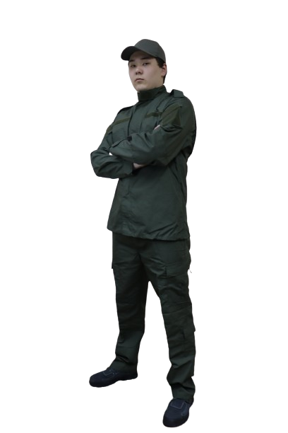 Вид изделия: костюм (куртка и брюки) Ед. изм.: комплект Материал: ткань смесовая 57% х/б, 43% п/э, плотность 220г/м2 Сезон: летняя / демисезонная (без утеплителя) Цвет: хаки Костюм разработан по аналогу НАТОвского костюма. При производстве учтены все детали оригинального костюма. Прочность материала Рип-Стоп (57% х/б, 43% п/э) позволяет использовать костюм в различных условиях. На куртке предусмотрены специальные липучки для крепления опознавательных знаков. Все утяжки и карманы расположены так же, как и у оригинального костюма. Куртка приталенного кроя, воротник-стойка двухслойный, застегивающийся на застежку-липучку, рукав втачной классический, на спинке предусмотрена складка для увеличения объема. Куртка застегивается на двойную молнию, манжет рукава двухслойный, утягивающийся на застежку-липучку. Локтевая зона рукава усилена вторым слоем материала с возможностью вставки мягкого пенополиуретанового налокотника, на каждом плече накладной карман, на плечевой зоне с двухслойным клапаном, застегивающимся на застежку-липучку, на левом предплечье накладной карман для ручек. Два нагрудных накладных кармана, расположенных по диагонали, с двухслойными клапанами, застегивающимися на застежку-липучку. В брюках внутри пояса вставлена веревка, брючины к низу заужены, два внутренних кармана по бокам. Два внутренних кармана сзади с двухслойным клапаном, застегивающимся на пуговицы, два накладных кармана на бедрах спереди с продольными складками для увеличения внутреннего объема с двухслойными клапанами, два кармана с боку в области голени, ширинка на пуговицах, скрытых под гульфиком, седло брюк усилено вторым слоем материала. Область колен усилена вторым слоем материала с возможностью вставки мягкого пенополиуретанового наколенника, застегивается на липучки.