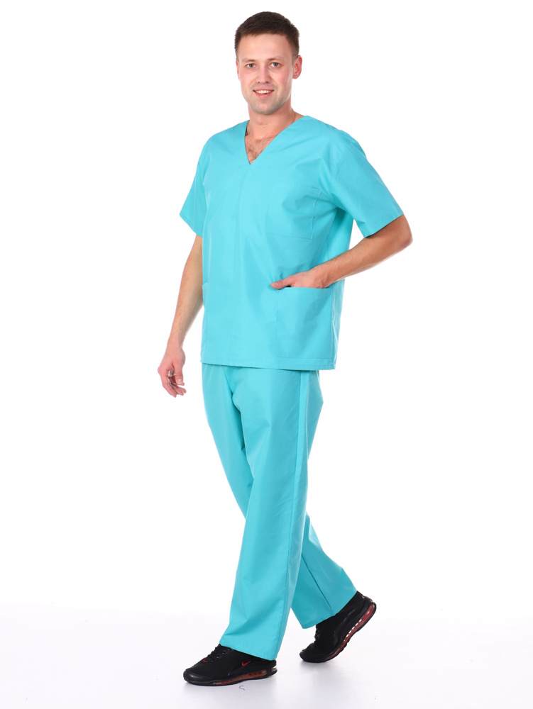 Описание товара: Костюм хирурга относится к универсальной спецодежде медицинских работников, он подходит как мужчинам, так и женщинам любящих удобство в форменной одежде. В составе костюма два наименования: блуза свободного кроя с V-образной горловиной, на которой предусмотрено два боковых и один нагрудный карман, а также прямых брюк на резинке. Для производства костюма взята легкая и износоустойчивая ткань «Тиси», в ее составе 65% полиэфира, что позволяет изделию сохранять первозданный внешний вид, после многочисленных стирок и санобработок, а также 35% хлопка, который дает телу возможность дышать, плотность ткани 120 г/кв.м, она не сковывает, даря свободу движения. Комплект: блуза, брюки, чепец, Материал: ткань сорочечная (65% полиэфир, 35% хлопок), Плотность: 120 гр/м2, ВО пропитка Цвет: бирюзовый. Можем ответить на любые вопросы в WhatsApp +7 (707) 521 66 93